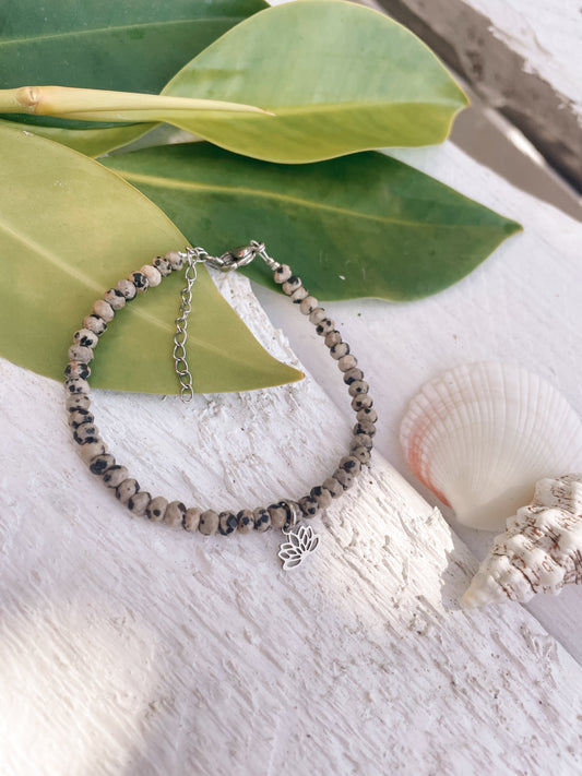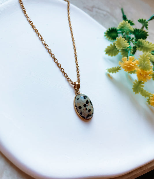 Dalmatiner Jaspis Schmuck ist der perfekte Begleiter für alle, die Balance, Lebensfreude und Energie in ihr Leben holen wollen. Der hellbeige bis graue Stein mit seinen charakteristischen schwarzen Punkten erinnert an das Fell eines Dalmatiners und symbolisiert Harmonie und Ausgeglichenheit. Er soll helfen, emotionale Blockaden zu lösen, das innere Kind zu aktivieren und das Selbstvertrauen zu stärken. Viele schätzen ihn als Schutzstein, der vor negativen Einflüssen schützt und eine positive Einstellung fördert.