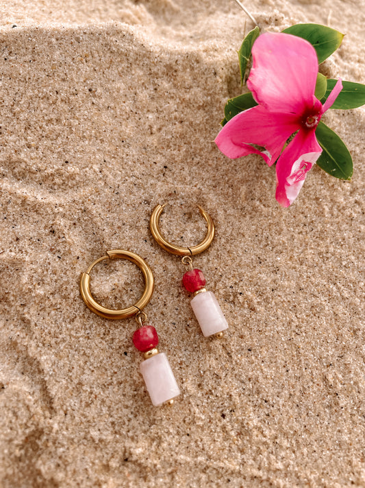 Pink Turmalin & Rosenquarz Creolen "OCEAN"