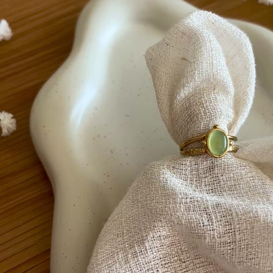 Unser "Soul" Ring mit funkelndem grünem Aventurin steht für dezente Schönheit – ein symbolischer Stein mit Bedeutung, der dich im Alltag begleitet und positive Vibes ausstrahlt. Für alle, die Wert auf Achtsamkeit, Stil und Bedeutung legen.