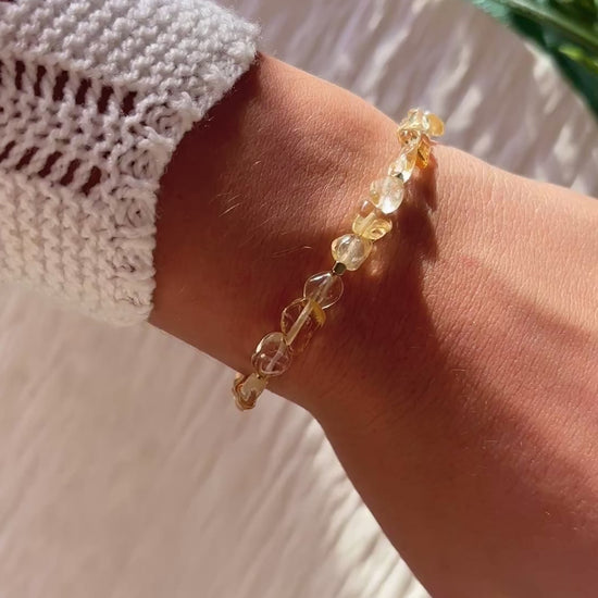Das Citrin Armband PEARL kombiniert natürliche Citrin Perlen mit quadratischen Edelstahl Elementen. Das Armband lässt sich leicht an- und ablegen, ist größenverstellbar und liegt angenehm am Handgelenk. Das warme Goldgelb des Citrins steht für Lebensfreude und Optimismus.
