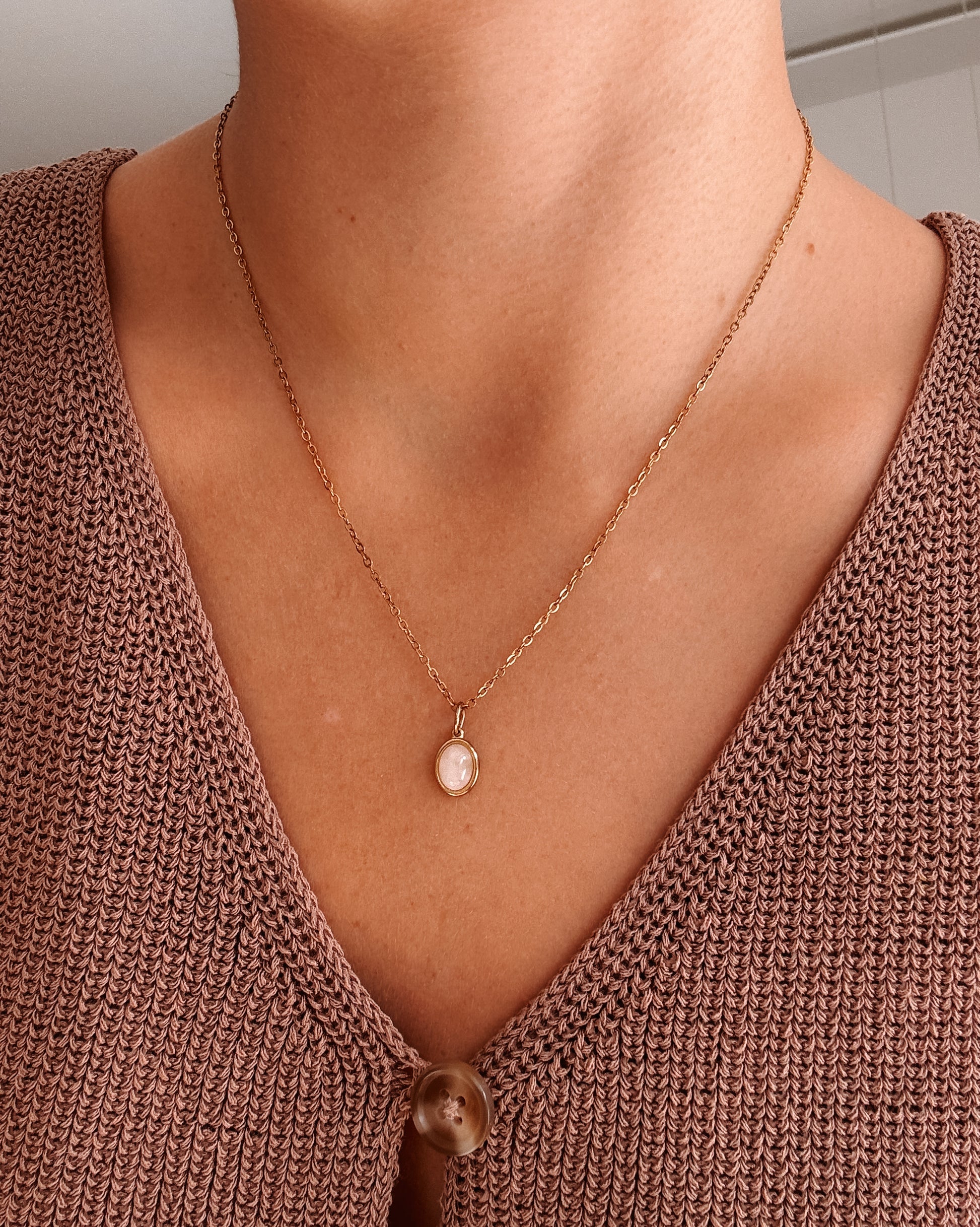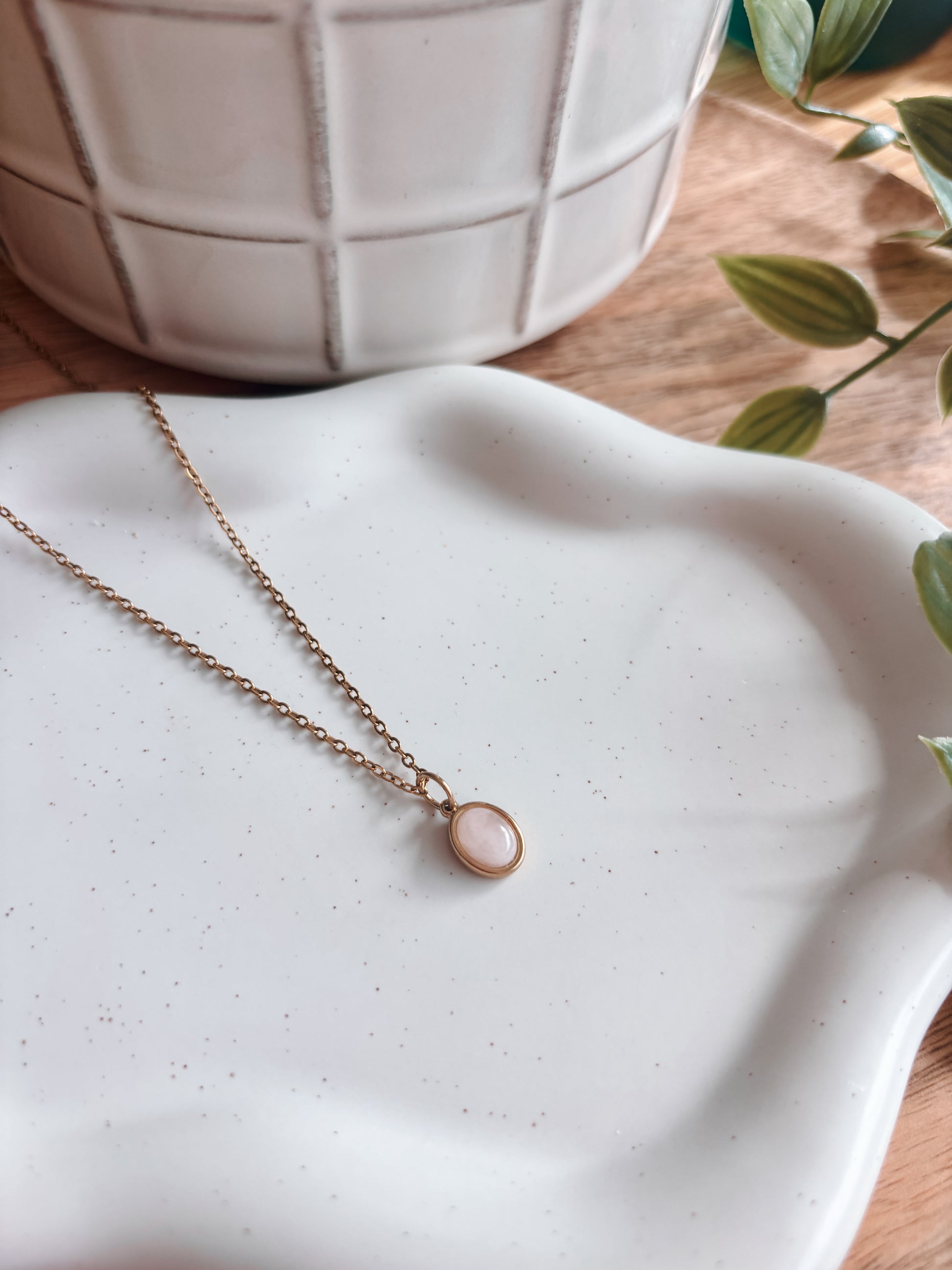 • Edelstein Kette SOUL mit Rosenquarz Anhänger in Gold oder Silber