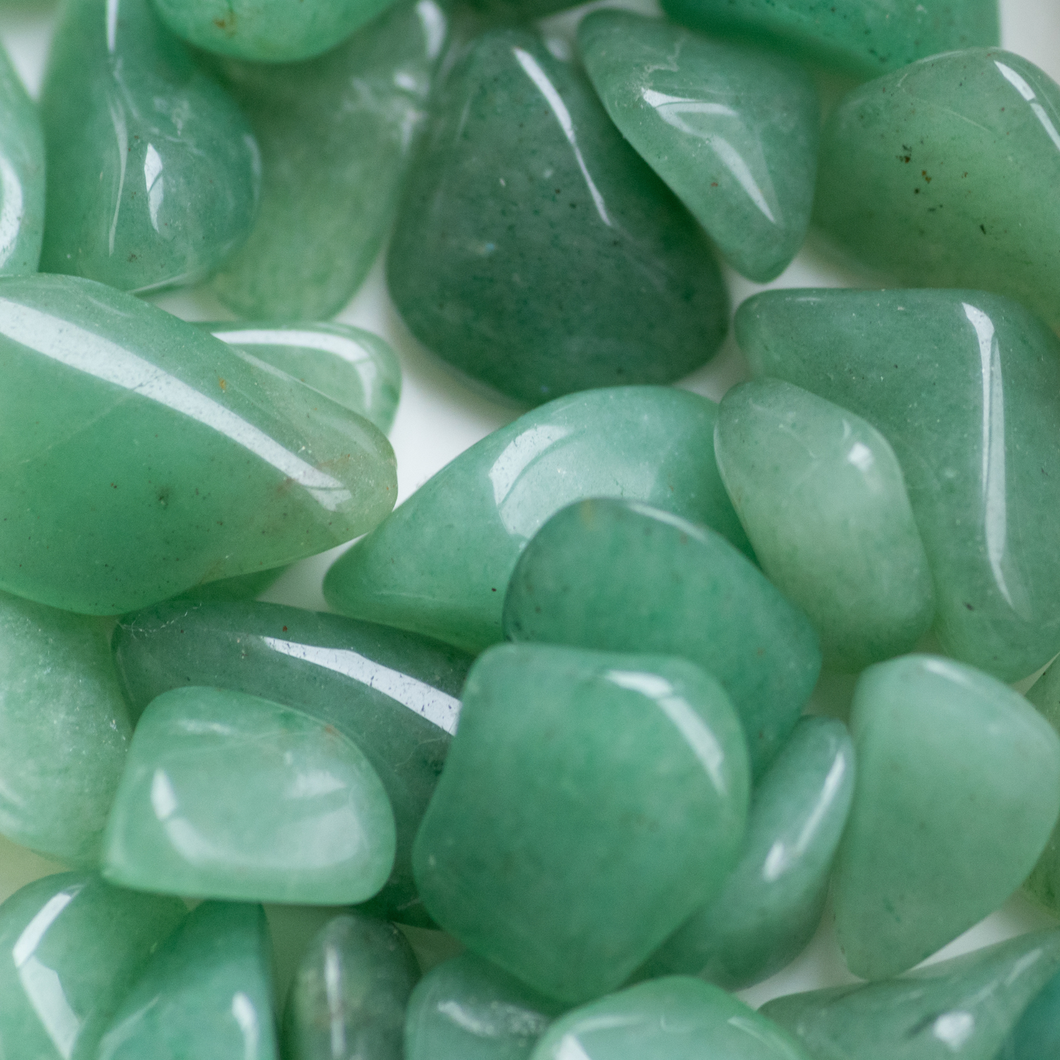 Die schönsten Aventurine stammen aus Indien, Brasilien und Russland. Charakteristisch sind die feinen Glimmereinschlüsse, die dem Stein seinen typischen funkelnden Schimmer verleihen – ein Effekt, der als Aventureszenz bezeichnet wird. Die Farbintensität variiert von hellem Mintgrün bis zu tiefem Waldgrün, durchzogen von natürlichen Mustern und glitzernden Partikeln, die jeden Stein zu einem individuellen Schmuckstück machen.